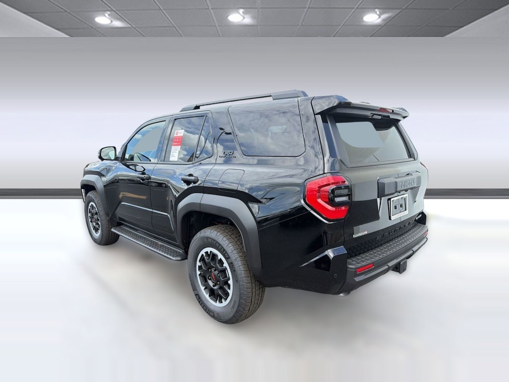 • Black honeycomb-style grille, mirror caps, door handles and overfenders; color-keyed rear spoiler; black "trd off road" and "4runner" badges.