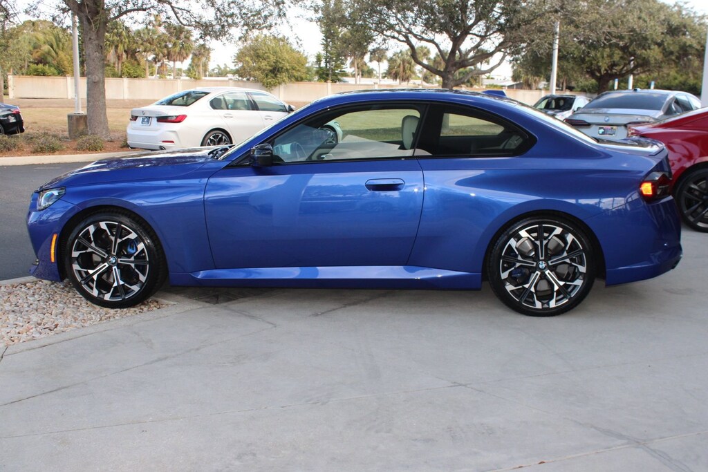 This 2025 BMW 2 Series M240i comes complete with features such as Navigation System, Active Driving Assistant, Blind Spot Detection, Front Collision Mitigation, Cross-Traffic Alert, Lane Departure Warning, Back-Up Camera, Comfort Access, Wireless Device Charging, Heated front seats, Power Folding Mirrors, Carbon Fiber trim, Adaptive M Suspension, Active Suspension, and much more!